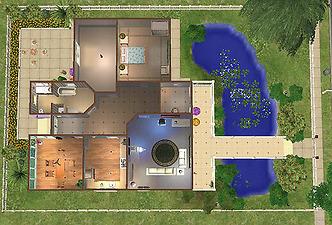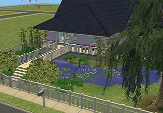 The house itself is reached via a bridge over the pond and is furnished, apart from the spare room, ready for your sims to move into.