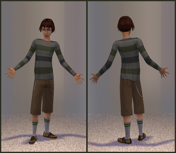 Please note if you wish to recolour this mesh that, although I've made sure the UV-mapping is as near to the male version as I can get, it's not 100% perfect on the chest (I've edited the original Maxis textures to account for this).