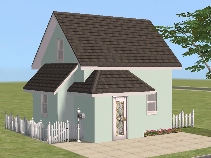 Small single-story starter house, furnished for three sims (two of them a couple), for under 13.000§. more...