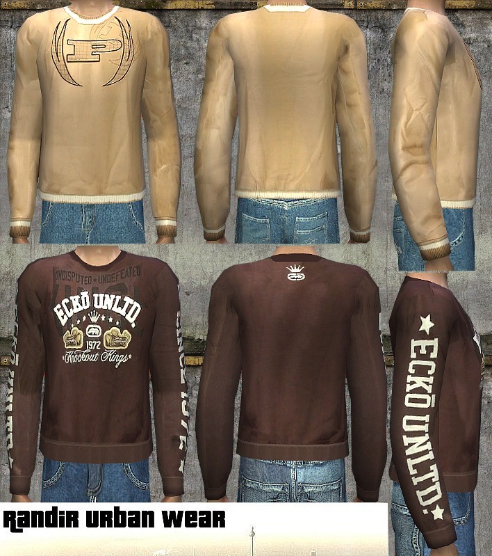 Time for some more clothes for our Sim men. Now I'm publishing 2 sweaters. One in dark brown inspired by Ecko Unltd and the one in sand colour inspired by Phat Pharm.