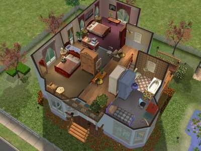 This old simple house is an attempt to build a realistic home for our sims. It includes four "normal" bedrooms and two bathrooms, modest living and dinning rooms and an small studio. It is acutally a haunted house thanks to the two graves there are in the garden. You can convert it into a real pain for thei residents if you kill some more sims and place their tombstones in the garden! Enjoy.