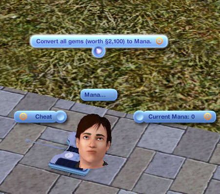 3) If you'd rather cheat than use gems or use the wand, there's a convenient Mana->Cheat menu option which allows you to directly edit how much stored mana there is. This item will also be useful to non-cheaters that may need to delete and recreate the item if they run into a bug while this item is in beta.