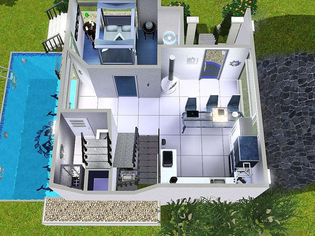 I'm using split level staircase. Basement Garage+Pool, tv under the stairs, tv upfront the bed, and many more squezeable placement