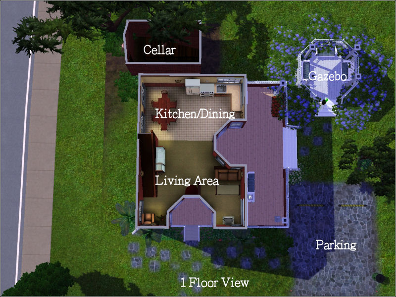 I created this house from gazebo up, I wanted to see if I could make a gazebo that was beautiful without having to download custom content and I think I did pretty darn good! It took about a day to complete this, but I feel it's complete. It's a single bedroom, but the 'office' can easily be modified and made into another bedroom. This, to date, for me is one of the most beautifully landscaped and built homes I've ever made, with that said it's another reason I wanted to share it with all of you here.