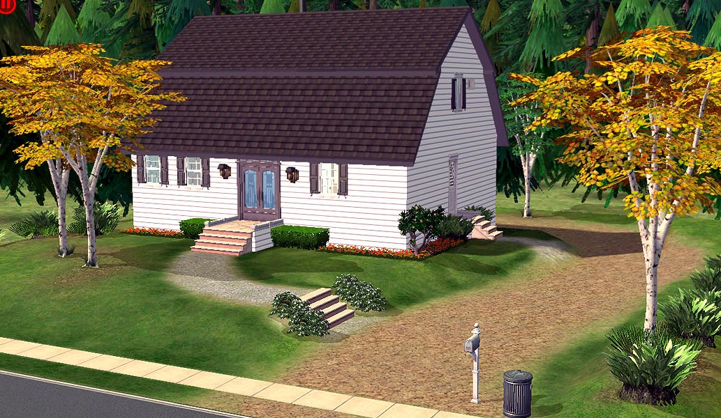 Here's a two (can be turned into three) bedroom home, suitable for your country Sim's. The house is built on elevated land in the crook of a simple, yet charming dirt clod road with plenty of shade, shrubs and blossoming flowers. *grits teeth and cheesy sale pitch*
