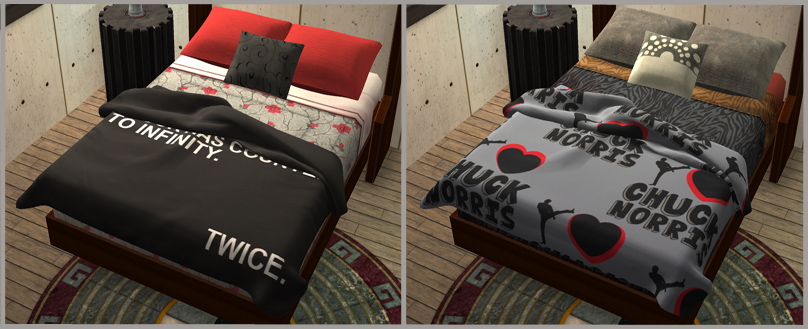 I didn't take any screenshots of any of the items slaved to the bed blanket because this post is about recolors of the double bed blanket. But if you don't have any of the slaved items, check them out. They're all full of awesome and worth checking into.