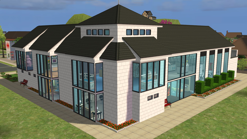 Bluewater Village Micro Mall was built in Bluewater Village, Pleasantview in 1973, by local architect at the time, Mellisa Roomies. The mall became an immediate go-to place for all the local teens, as a hang out spot after school; parents, as a place to take their children to occupy them with something else other than making a mess in mommy's freshly cleaned kitchen; and elders, as a place to meet and greet and catch up on local gossip. The mall killed all other local competition for many years, until new Sims started moving in, and building their own small businesses, with lower prices and friendlier service. The mall was closed in 2003, set to be demolished due to complaints about it being a local eyesore, and magnate for crime. But a local entrepreneur, Malcolm Landgraab, saw the potential this mall still possessed, and bought the land, building, and name from the city, and started executing his plan to take this once local Mom-and-Pop mini mall into a national franchise chain. Today marks the first Grand opening of the first of many malls in the chain. Welcome to Bluewater Village.