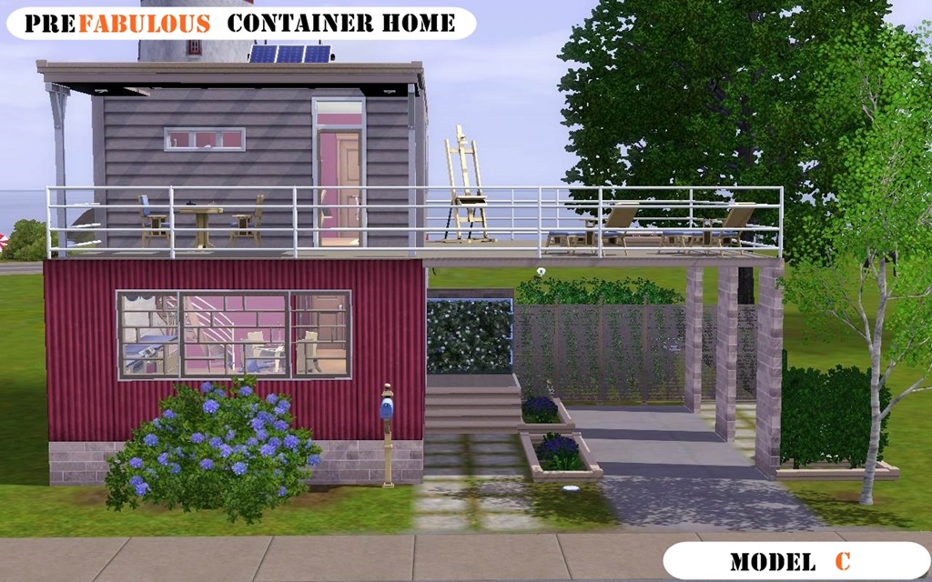 Perfect for sims on a modest budget, this container home comes fully furnished and features: