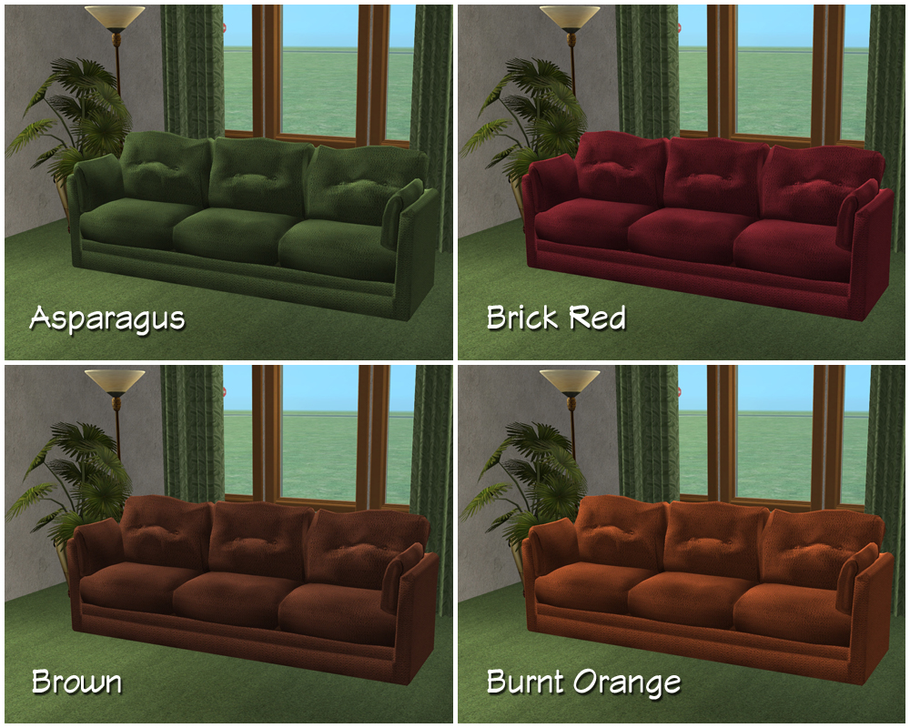 I gave it a plushier, more upholstery-looking texture and then slapped twelve Crayola crayon colors on it, and since I haven't been sharing much here at MTS because I've been lazy and just plopping stuff on my Simblr instead, I figured I'd put these up here for a change. So, here they be: