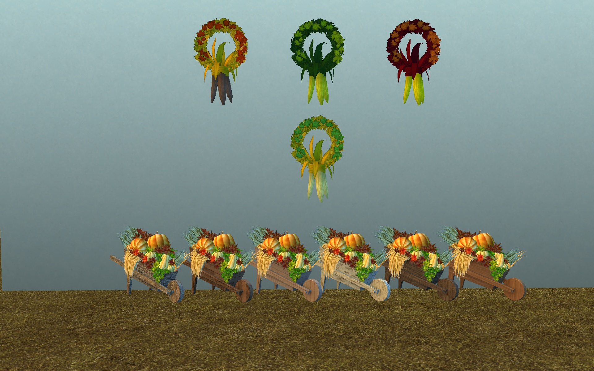 this pack contain an amount of 13 object from both sims 2 and 3 this objects are here now so you can decorate your house for thanksgiving
