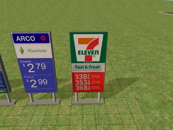 I made a lot more recolors for nicvcnt's The "LookAtMe" Supersize Outdoor Illuminated Sign. New recolors for the fuel stations and convenience stores are including in the list below.