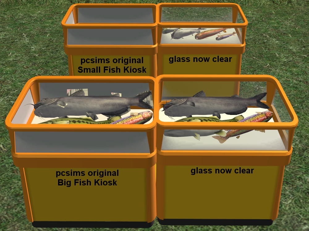 Goldenbtrfly asked if I could slave the pcsims_smb 'Fish Kiosk' to the OFB 'Imperial Plumbing Pole - Air Freezer Bin'. Whilst I was playing around with the mesh I reduced the width a tiny bit. Then remapped it so the glass was clear, changed the stdMatAlphaTestEnabled in the Material Definition (TXMT) and changed the price to match the 'Imperial Plumbing Pole - Air Freezer Bin'. I did change the file names but did not change the GUID's, so please remove any older version of the Fish Kiosk before installing these in your downloads folder. Any recolours of the 'Imperial Plumbing Pole - Air Freezer Bin' will now show for both 'Fish Kiosks', my recolours of the 'Imperial Plumbing Pole - Air Freezer Bin' can be found HERE.