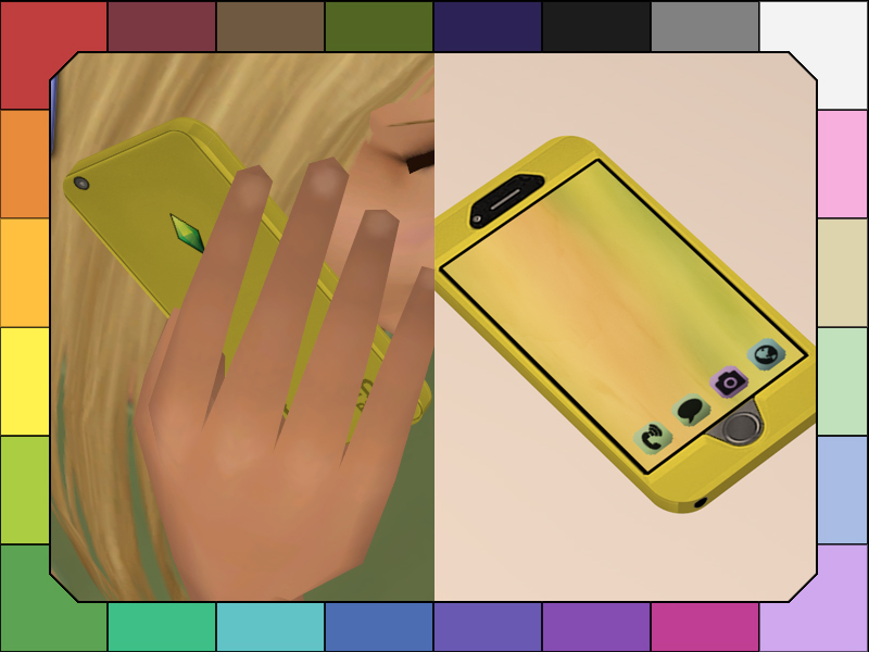 which is perfect for what I was looking for. I used a (heavily modified) OtterBox Defender image I snagged off Amazon for the basic look, but I made the wallpapers on the actual phone screen myself.THIS IS A DEFAULT REPLACEMENT. This means that once you have it, it will replace the Sims default phone that can be purchased at a kiosk. To my knowledge, default replacements of this manner can't be bought with the hack that makes them show up in the catalogue, but you can use Monique's hacked computer to get them. In order to change these out for the new ones, I think you have to sell and rebuy your phone, but I used the aforementioned hacked computer, since I'm having a glitch where I can't get to community lots because the queue cancels for some reason, and it worked just fine.
