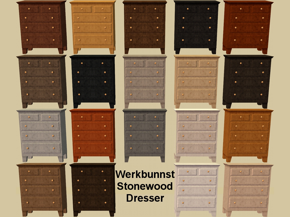 These are not base game compatible, Open for Business is required for the Werkbunnst Medium Stonewood Dresser!