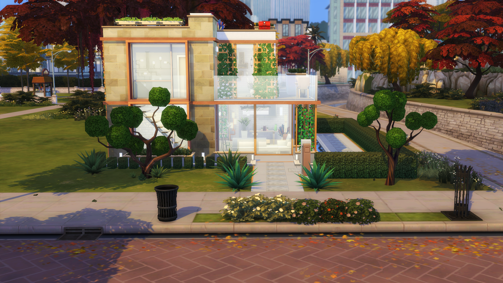 This is a 1-bedroom and 1-bathroom eco-friendly home fit for a single lady who is into the eco lifestyle and is someone who really loves plants! The architecture is very modern and it is furnished with a semi-industrial style. This house has three floors with the third floor being a rooftop with a pool and a cozy hangout space. The second floor is where the bedroom is along with an en suite bathroom. The first floor is where the living room, kitchen, dining area, and laundry are. There are no backyard space/backyard activity in this build but I included a small station where your sim can plant their produce in there along with a bike rack with a bike to go along with the eco inspiration of the build.