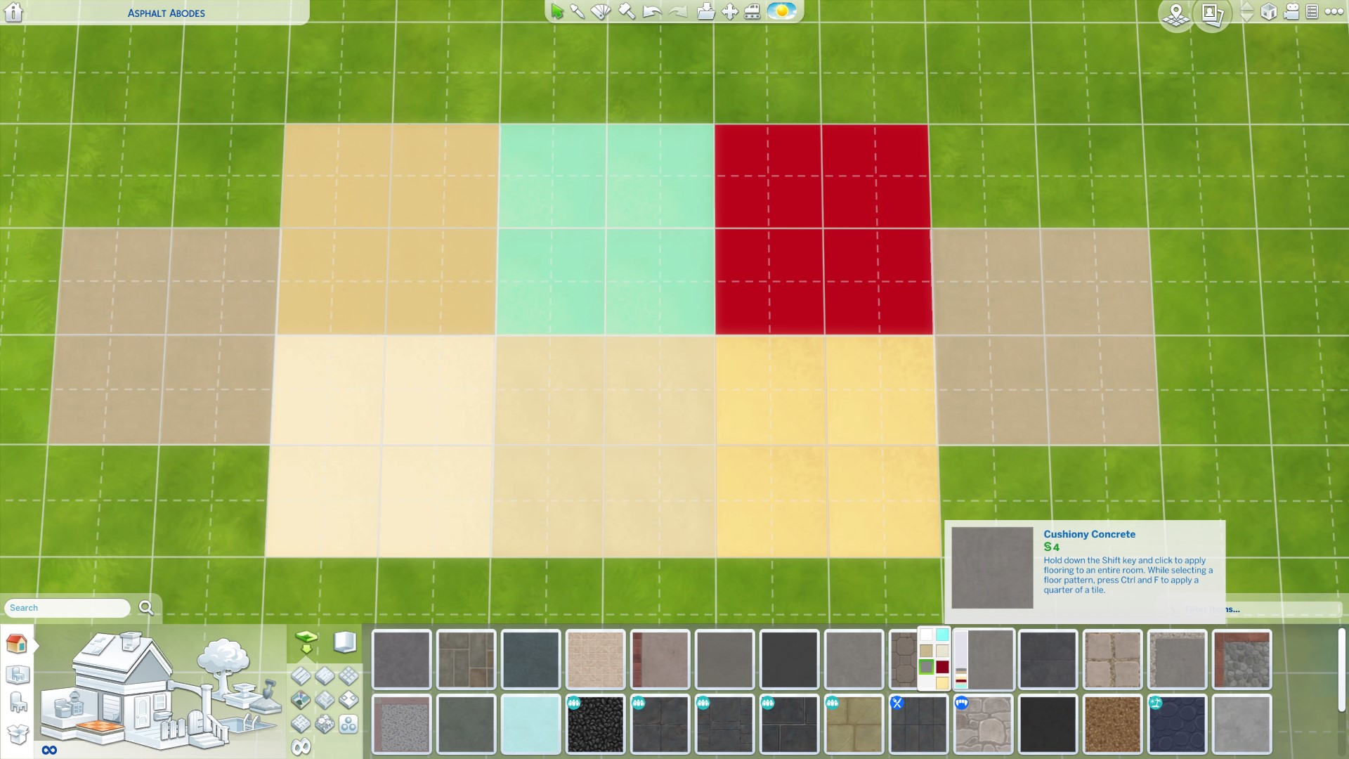 A concrete floor tile in 10 colors that match Maxis's ''Patterned Plaster'' Wall