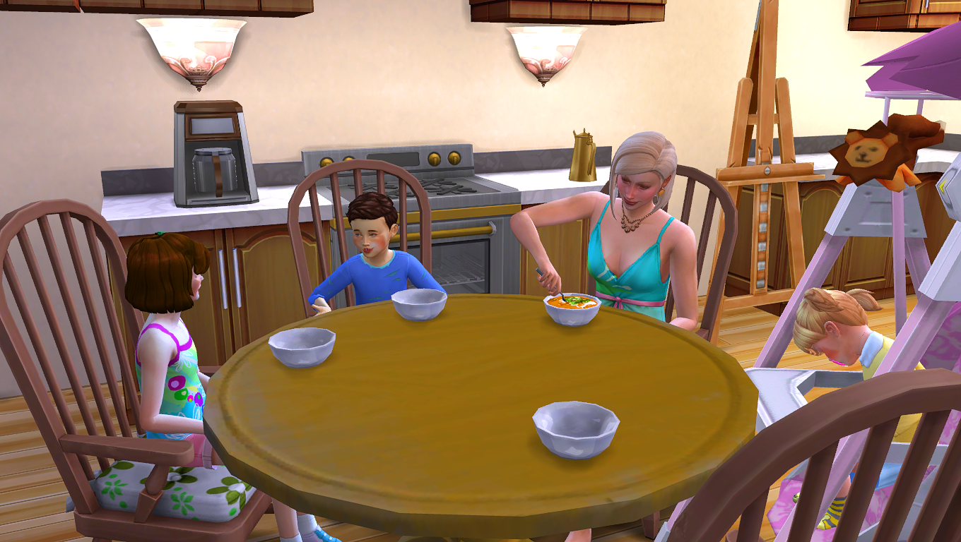 Sims will not get up from the table to wash the dishes right after having eaten.