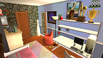 - I know that Alex room has a dark desk in a cartoon and it's in a diffrent corner of a room but new floor plan has a lot of tight spaces so I had to work with my own ideas and with furniture and colors that I like and I think looked good on this lot.