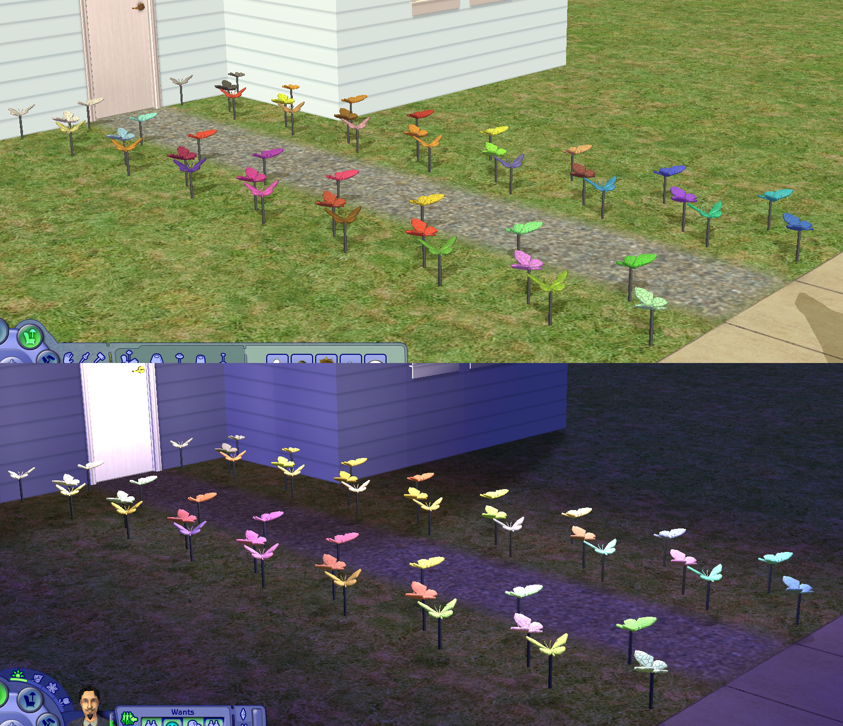 Poly count: 1386, which is a bit high for something designed to use en masse, but considering you're getting three little butterflies in each square, rather understandable.