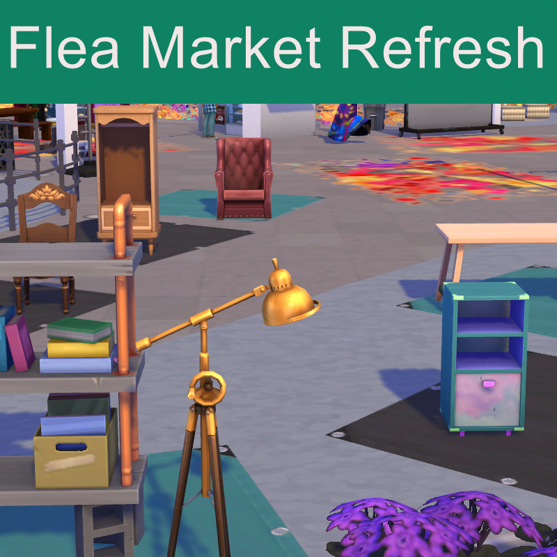 - Replaces some of the items in the default Flea Market catalog (the same one since City Living pack came out) with fresh items from other packs and from the Base Game.