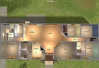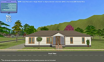 I needed a basic house for a huge family I made in CAS. Even though they had extra starting funds, they still needed help getting into a house. So I built this very basic 4 bedroom double-wide and used Pescado's "Magic Wand" to bring the price down under $20K.