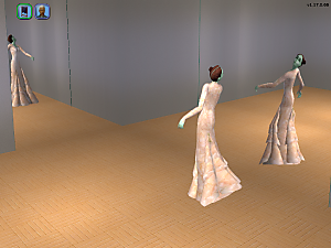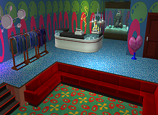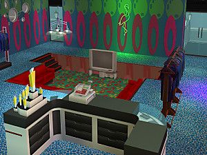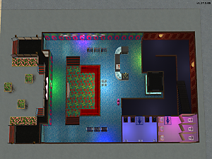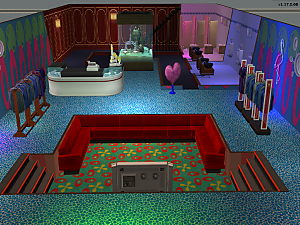 I made this lot because I wanted a decent changing room, one that let me properly view and take screenshots of my sims trying on clothes. The TV room downstairs is a distraction for the townies that would otherwise wander in my way and it works. Sims typically don't look beyond their nose when exploring so it's not hard to hide whole rooms from them.