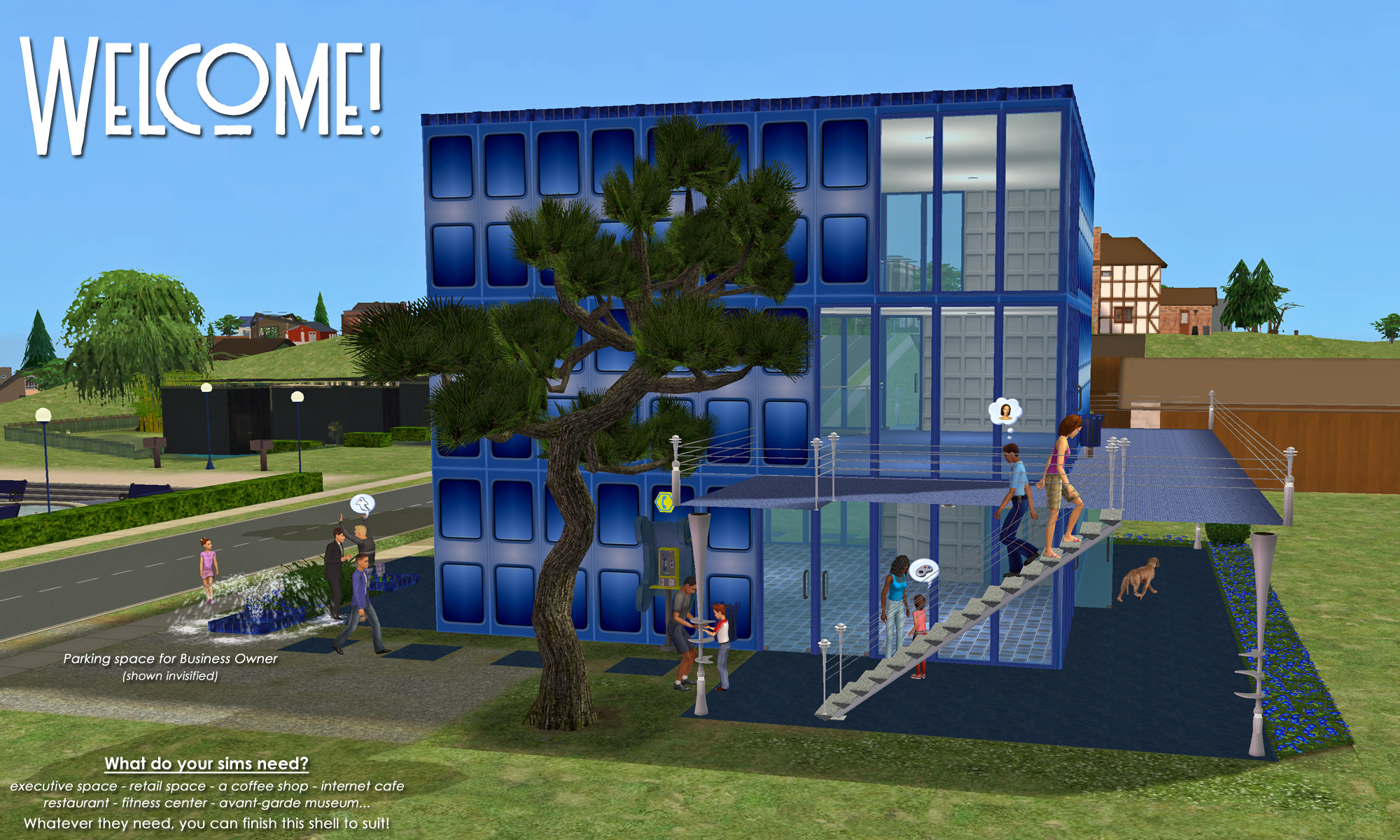 This lot is UNfurnished. (Please CC-it-up once you get it in your game!). Plumbing and lighting are included. The community telephone is located on the right side of the building.