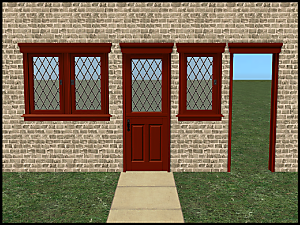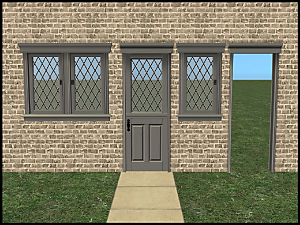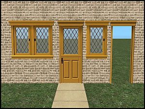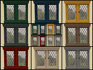 Recolours of OpenMe Doors & Windows to match Maxis exterior timbered walls