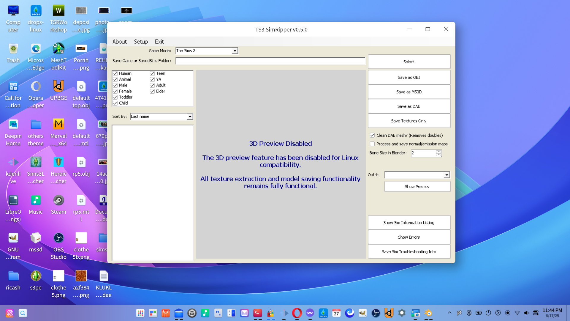 Introducing TS3RipperX 0.5.0, the new and improved version of TS3SimRipper, now in a simplified and more efficient package! This version is fully compatible with Linux using Wine and MONO.
