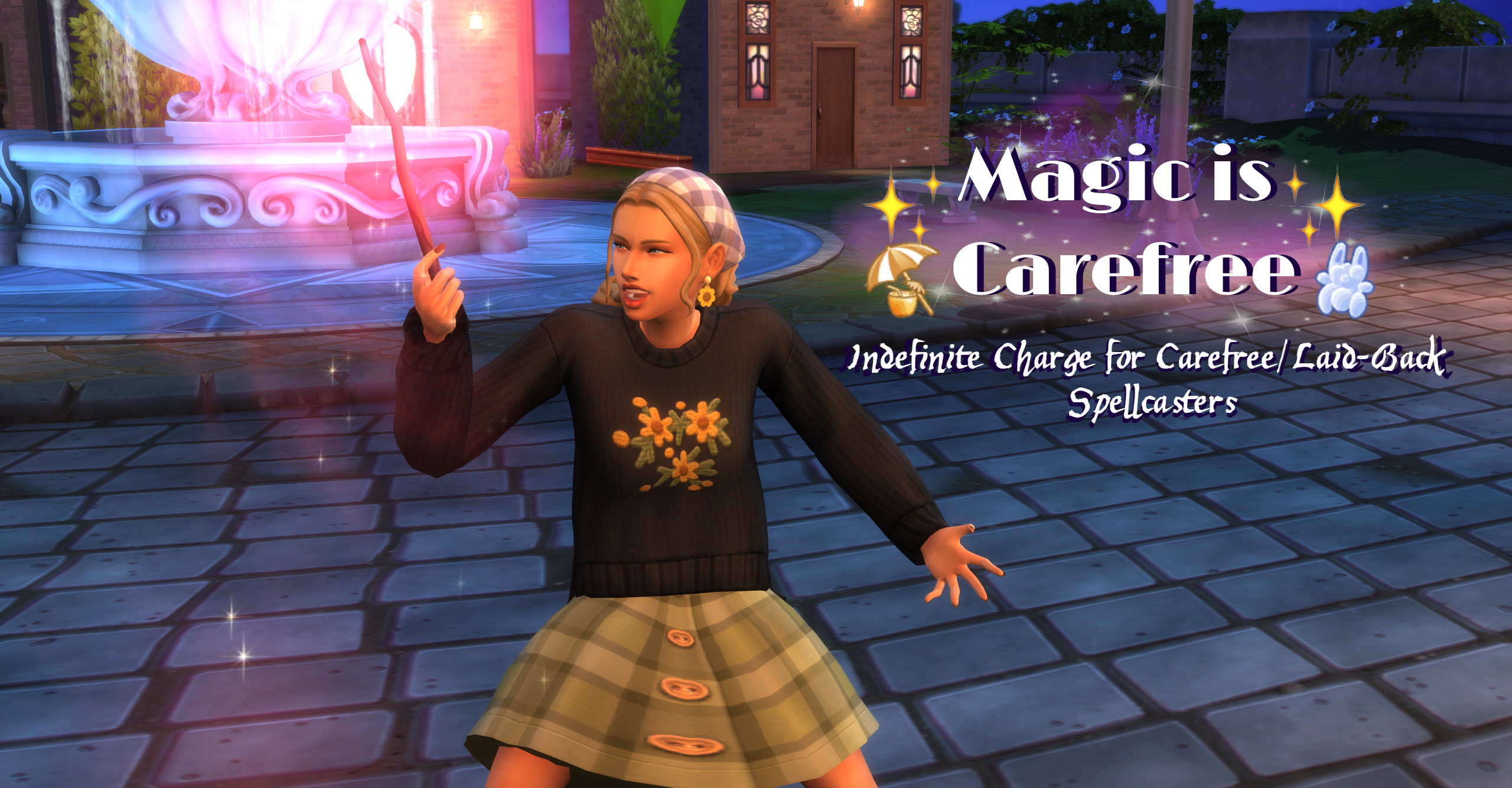 But like it says in the title, spellcasters who are carefree or laid back can stay charged indefinitely with this mod. In vanilla, those traits make it impossible for a sim to be tense. In the case of spellcasters, that means their virtually immune to spellcaster overcharge death.