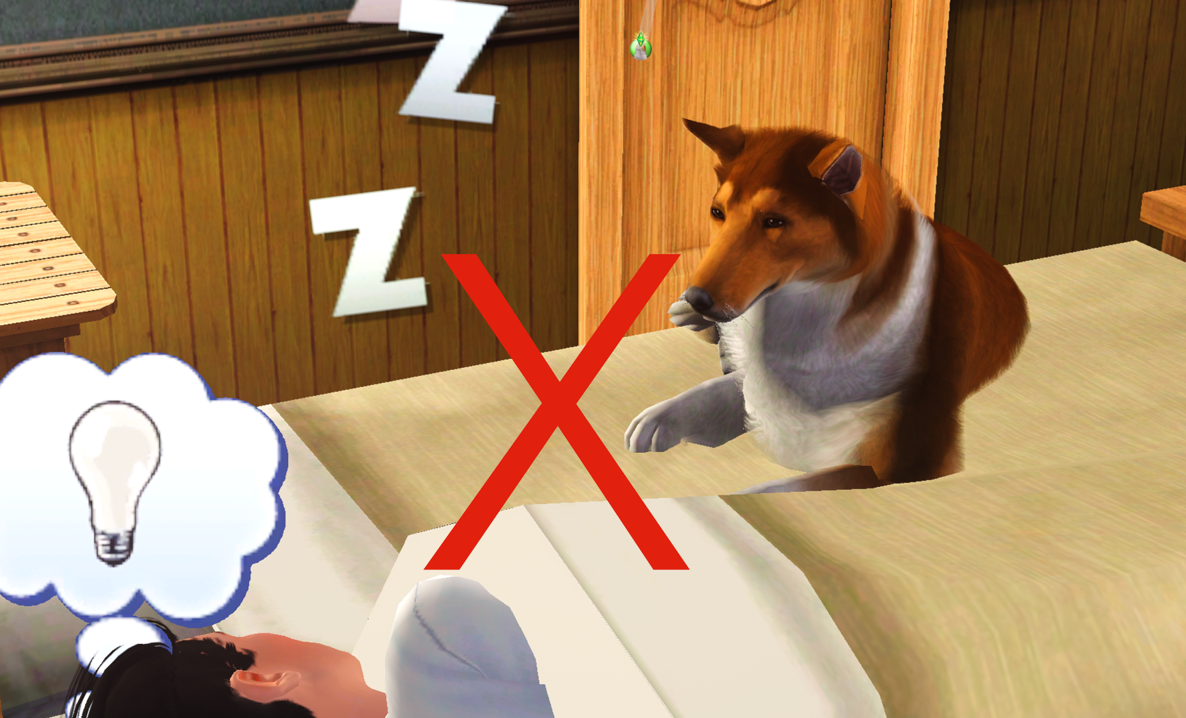 | Version that prevents negative reactions and stops pets from waking up sims.