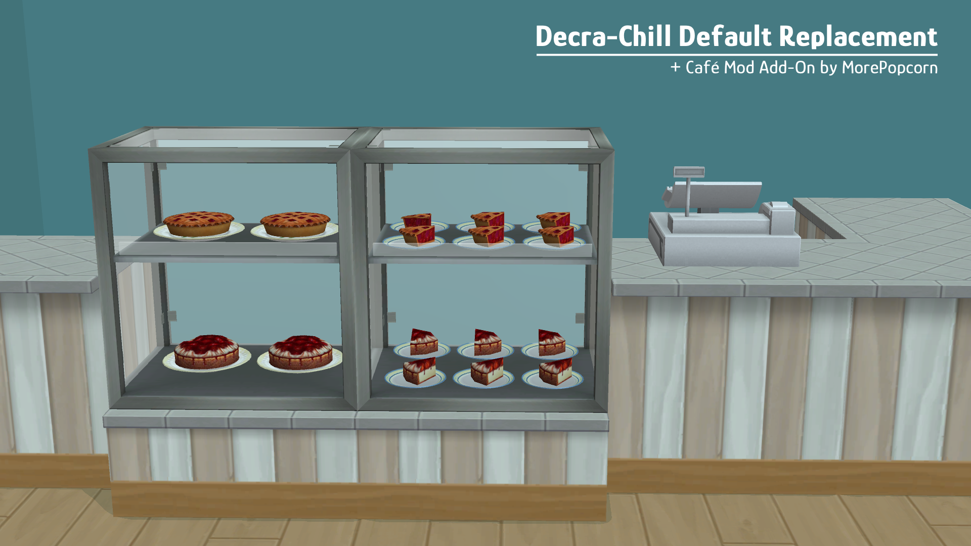| If you use TeaAddict's Café Mod and you don't want to replace the Maxis Decra-Chill, use this custom version of the display fridge.
