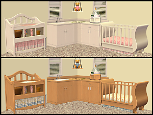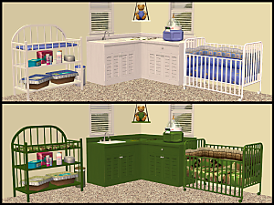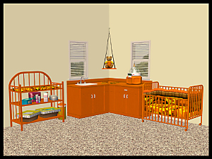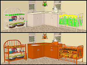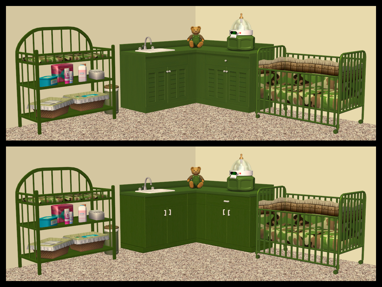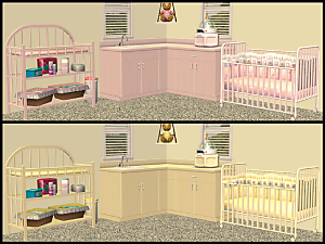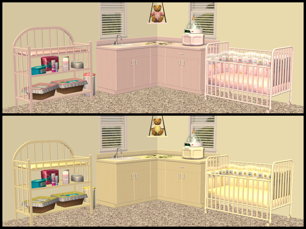Epikouros "Sleek Cuisine" Counter and Krampft Industries Value Counter to match the Base Game and FreeTime changing tables and cribs. I also threw in nursery recolours of the Durable Plush Teddy Bear and Pasteur's HomoGenius Smart Milk.