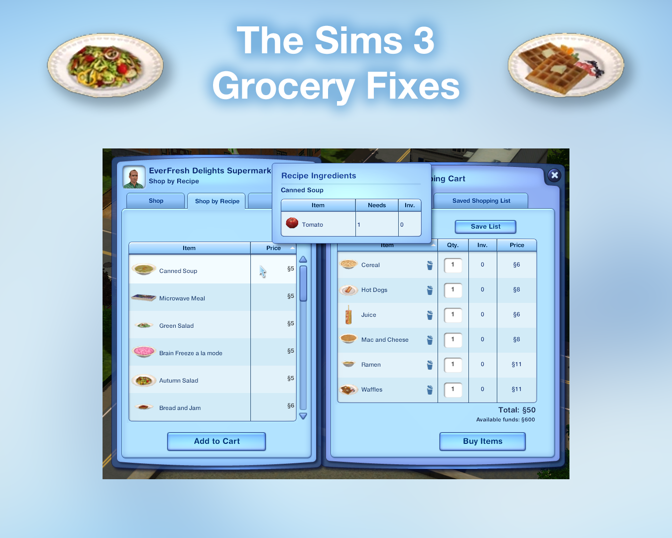 #fixing, #fixes, #bugfix, #bug fix, #ea oversight, #patch, #enhance, #cooking, #recipes, #shop by recipe, #shop for groceries, #grocery store, #grocery rabbithole, #empty shop by recipe fix, #non-core, #method replace, #menu fix, #store menu fix, #buy fix, #meal fix, #food fix