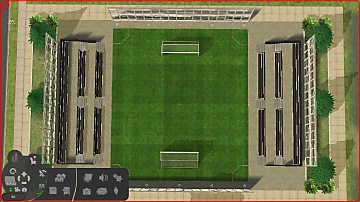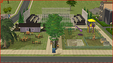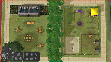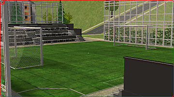 Just like what the description said, the lot is divided into 3 areas: the kids and pets playground, the BBQ/outdoor dining area, and the soccer field. My favorite is definitely the soccer field since I get to map out the soccer goals, the bleachers, and the "net" around the field. I think it looks pretty realistic. If you could find a custom rug that mimic the lines in a soccer field just like the ones for basketball that's already in the game, that would be the cherry on top.