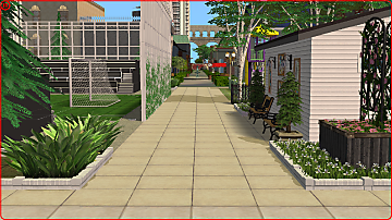 So I have decided to replace all of them with 4 new lots. One thing that I miss from The Sims 3 is the open world gameplay, so I figured maybe I could somewhat recreate that by putting multiple buildings in one large lot, so your Sim can wander around without traveling to a different lot.