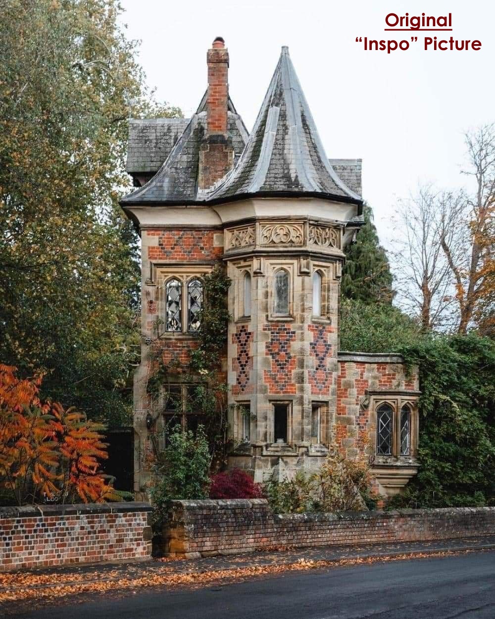 #Dower House, #mini castle, #gothic, #romantic, #Hampton Court, #sloped lot, #small lot, #CatherineTCJD