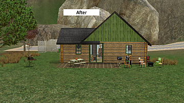 Hi all! Good to be back with a new build. I've been playing in Bridgeport a lot recently, and have found that my teens lack a real 'home away from home' to cause trouble in. Well, given that this cute little cabin wasn't doing anything in my current save, I decided to let them have their way with it.