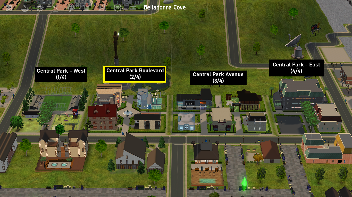 #Central Park, #Belladonna Cove, #Park, #Plaza, #Boulevard, #Library, #Restaurant, #Clothing store, #H&M, #Grocery, #Shop, #Shopping, #Gym, #Music, #Club, #Bar, #Theater, #Skill, #Talent, #Pool, #Fountain, #Community lot