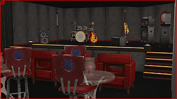 The theater has 2 floors while the gym has 3. I imagine these two were the oldest buildings in the lot. The theater used to be a small cinema turned into this live music venue/club by a group of small artists, making it their home venue to perform and have some fun. On the first floor you have the stage with all the music instruments, and on the second floor you have a mini club with a DJ booth and a bar.