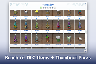 Recipes include HSY lunch trays, many meals/delights from Snowy Escape, fixes pizza from Home Chef Hustle not showing (maxis did intend for them to work in restaurants, but forgot to include tags that make recipes actually show beyond the check for restaurant inclusion), ranch nectar, most of the juices from Eco Lifestyle and other stuff that I cannot recall.