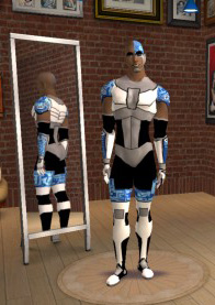 First off: Cyborg! The only adult on the squad, since you can't have a house full of teens and I really, really wanted to use the Bodybuilder mesh for him.