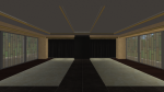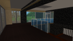 Justpetro kindly responded to my WCIF, giving a link to some recolours of that window by Michelle on TheNinthWaveSims website. I used that to move the toilet window to the front gable, and widen that gable to a more symmetrical appearance to the front of the building. This also allowed me to add an indoor shower. (The original hut has an outdoor shower at the back of the building.) I had to build several temporary internal walls to support the weight of the front gable roof, while I was building it. I'm not sure why I needed them, but I removed them all after I finished the roof.