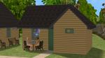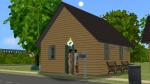I used Mootilda's lot adjuster to increase the size of the lot from 1x1 to 2x1, and built this new sleeping hut. I had some difficulty levelling the ground to build on it, but I succeeded in the end. The little bit built out into a small gable at the front is the toilet. When all the other doors and windows were painted green, I really didn't like having to use a white Glasterpieces Privacy Window for the toilet, so I started a WCIF thread to see if there was a green recolour. Meantime I put the white window on the side of the building, so it wouldn't be too obvious from the street.