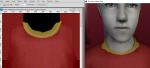 I did a bit of poking, just so you've got an example with the slight feathering. On this one I've used the selection tool with 0 on feathering (there's still a little bit, but it mostly shows on diagonals) and layer masking, plus I extracted the UVmap to diagnose a few issues with seams. If you follow the exact lines of the shown hems, you get much the same result as I did. The mesh suffers from some UVmapping issues in the neckline, where it stretches the texture in the front - not much to do about that.
