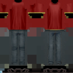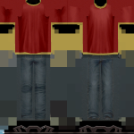 Here's a bunch of screenshots displaying what the current version of the outfit looks like in-game. Doesn't look like I've coloured any parts that are supposed to stay red which is a good thing. But there's a clear outline of pixels that should be coloured yellow but are coloured red: