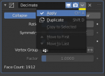 Set Decimate to Collapse, tick Triangulate, drag the Ratio (or click and type in) to around 0.5, and preview the effects in the viewport.