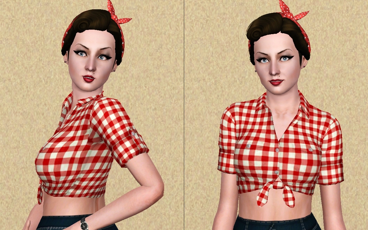 I used to create a sim with wearing knotted top from Sims 3 Pets