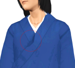 If you're making this into a top, you cannot have any UV in the bottom right of the UV map, as that is reserved for bottom parts by EA. Also, if your plan is to make this an open bottom, no top UV can cover the bottom legs area. But, I see you have a bottom close off.