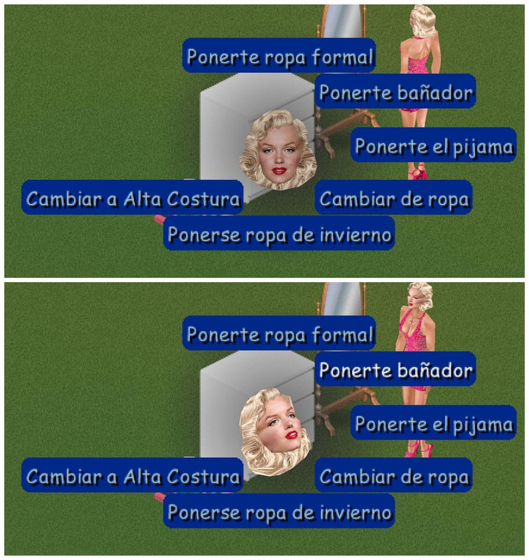 When you click on the TheSims1 player, the head appears, and right in front of it is a black circular shadow. This shadow moves behind the head when you select an interaction, but if you don't select anything, the shadow is always in front of the face.